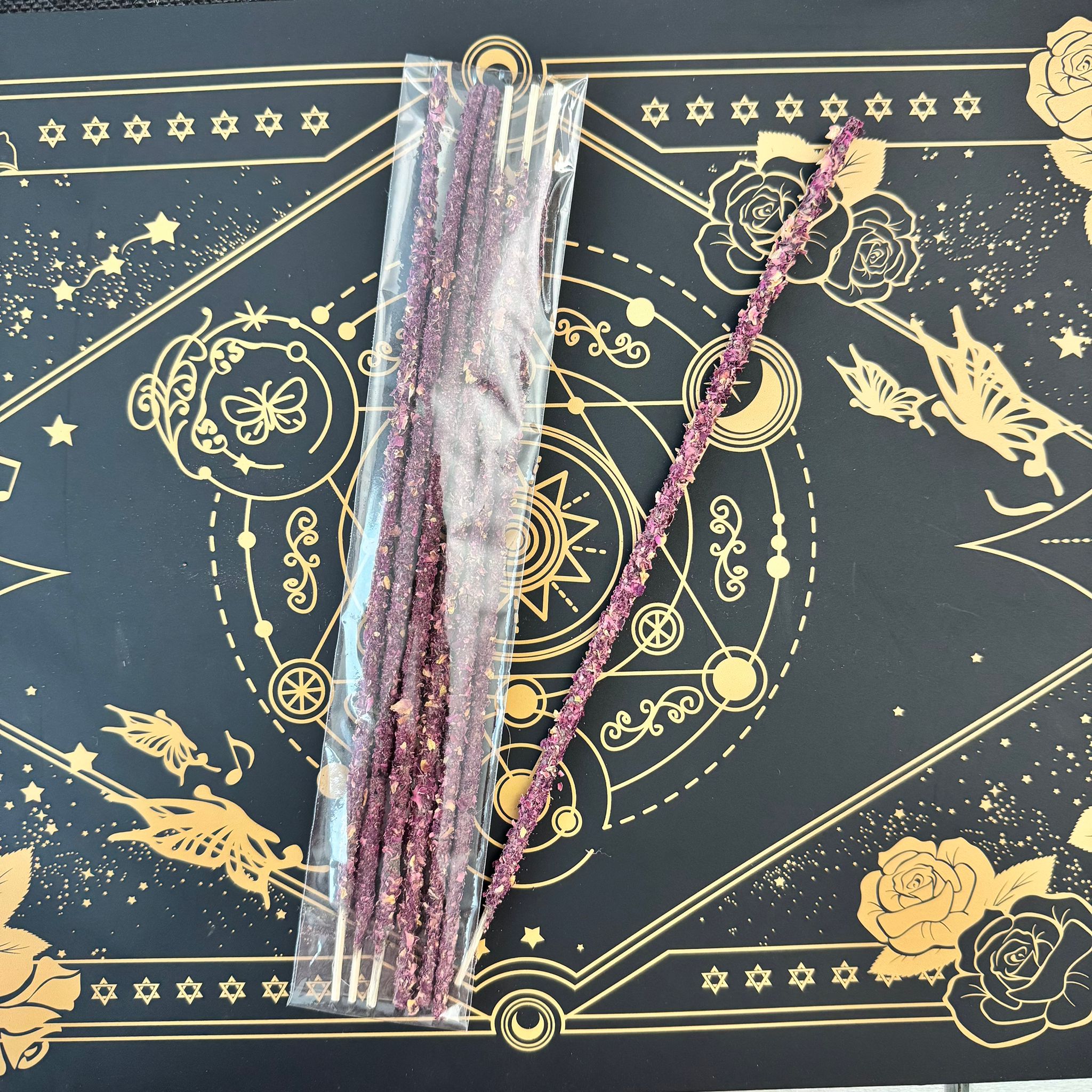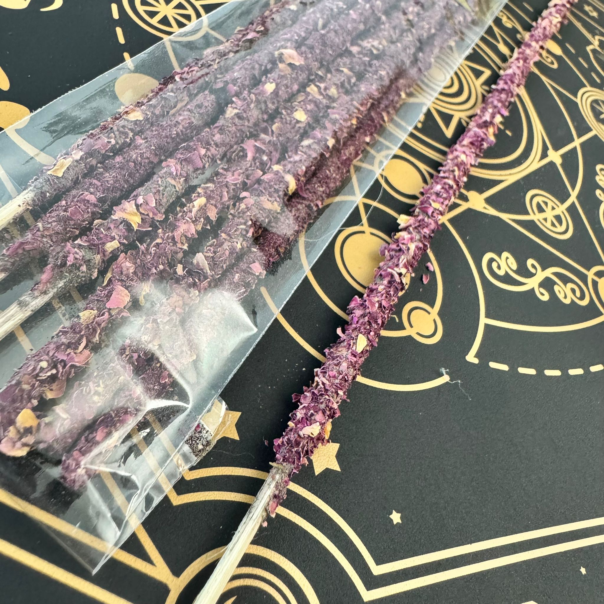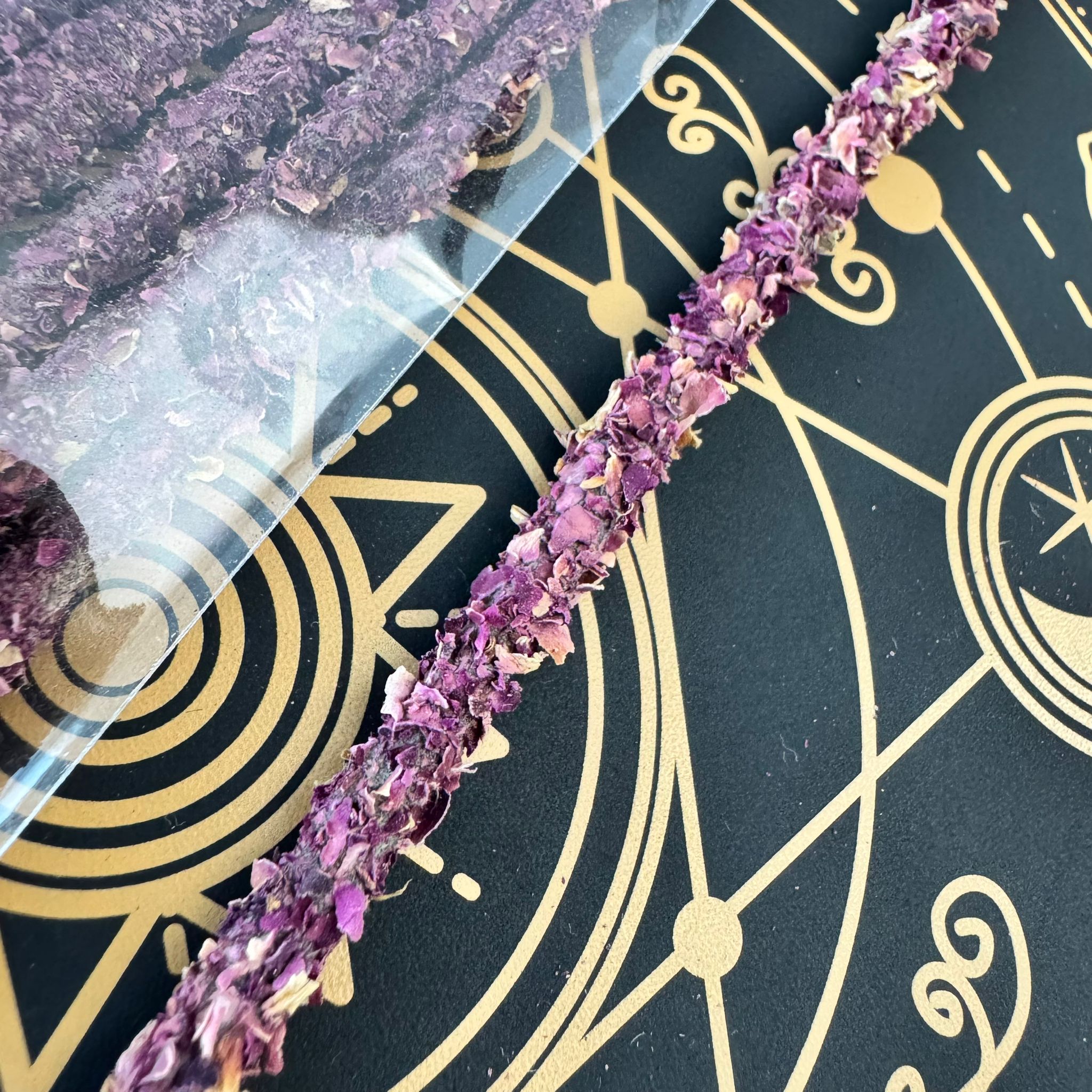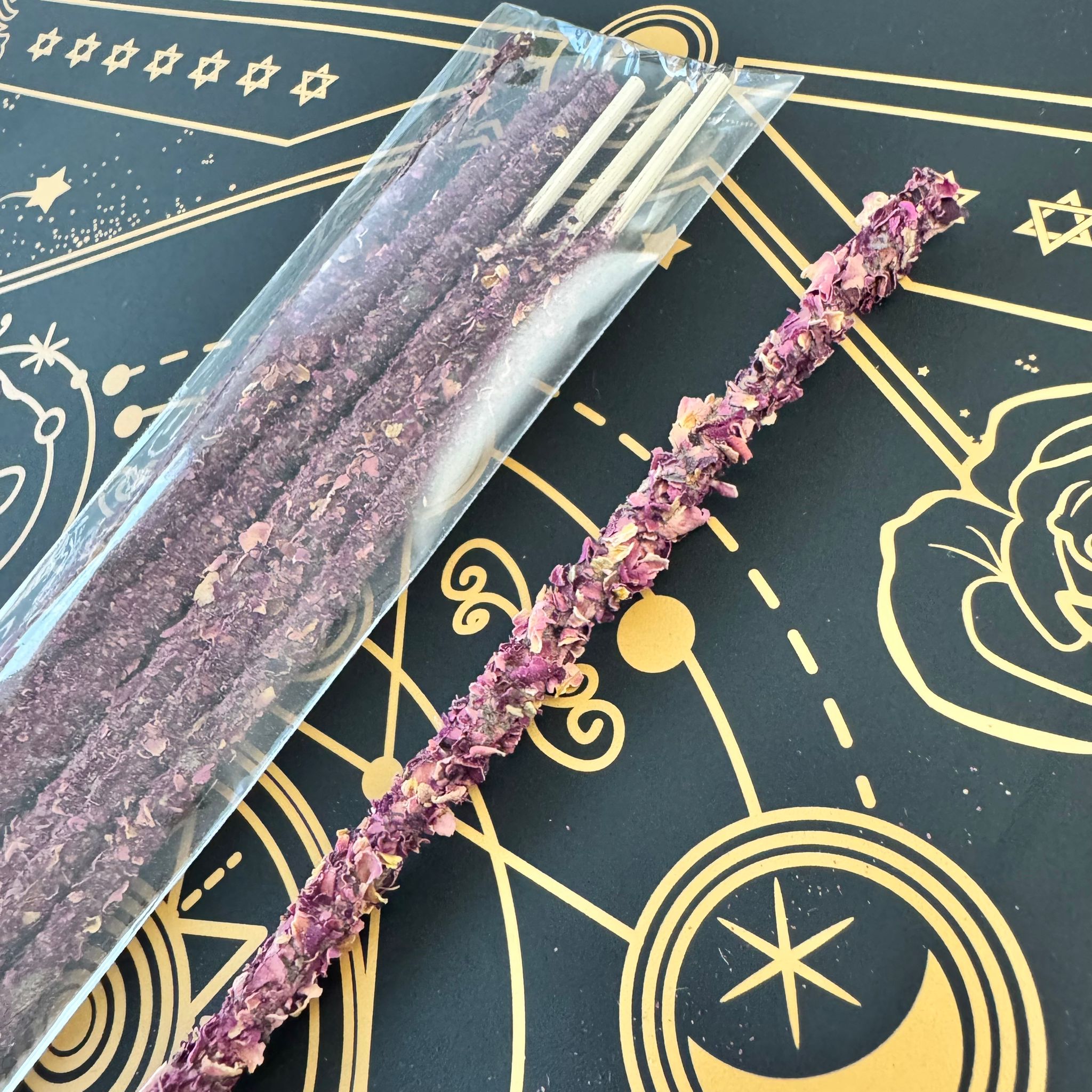 Un incienso natural y hecho a mano, elaborado con ingredientes de calidad y perfumado con el delicado aroma de las rosas, flor sagrada asociada al amor, la pureza y la armonía espiritual.