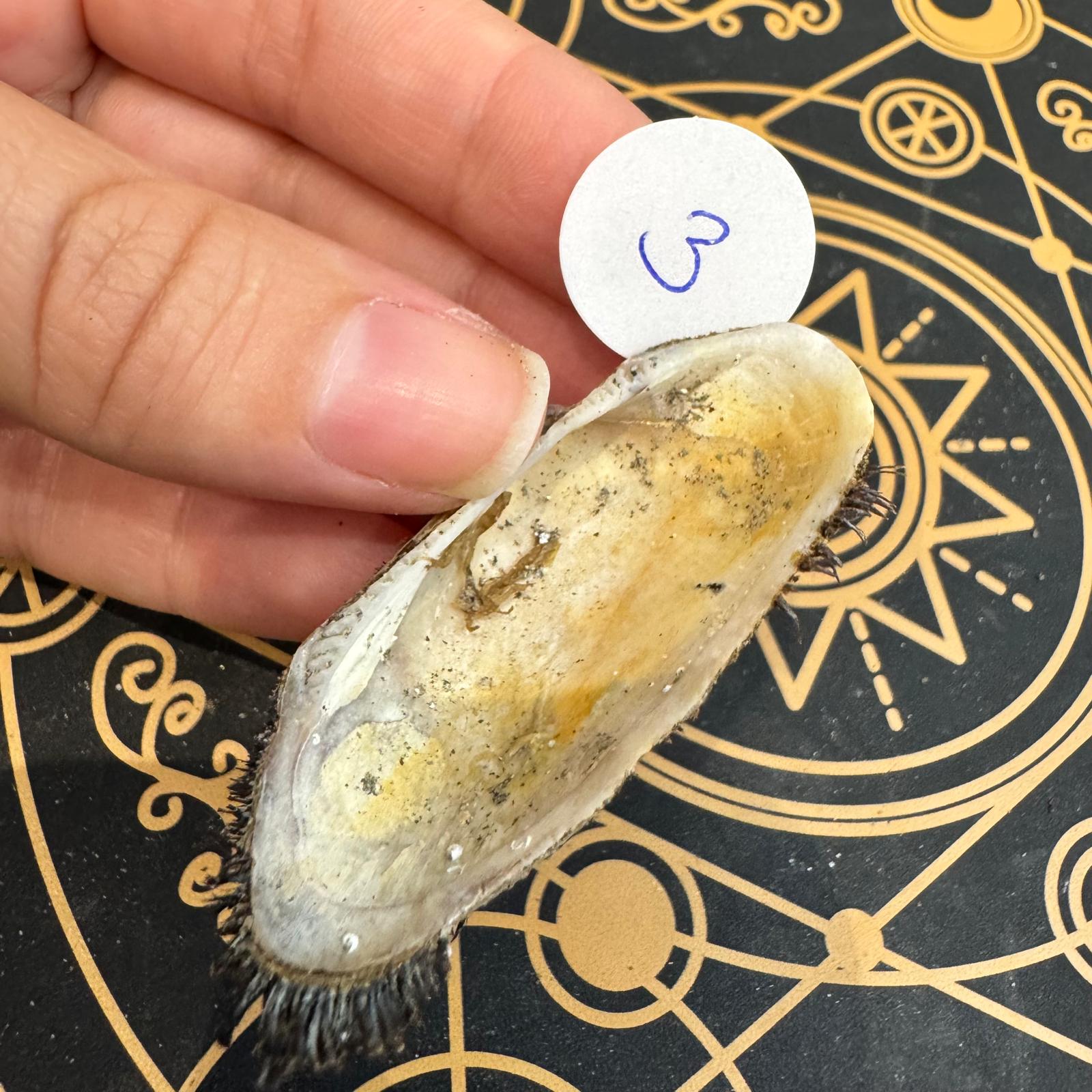 Estas conchas marinas de gran tamaño, ovaladas y naturalmente texturizadas, son auténticas piezas de colección. Recolectadas únicamente tras procesos naturales y mareas fuertes, cada concha conserva restos de algas secas, escaramujos, sedimentos y estructuras marinas que se han adherido a lo largo de su vida bajo el océano.