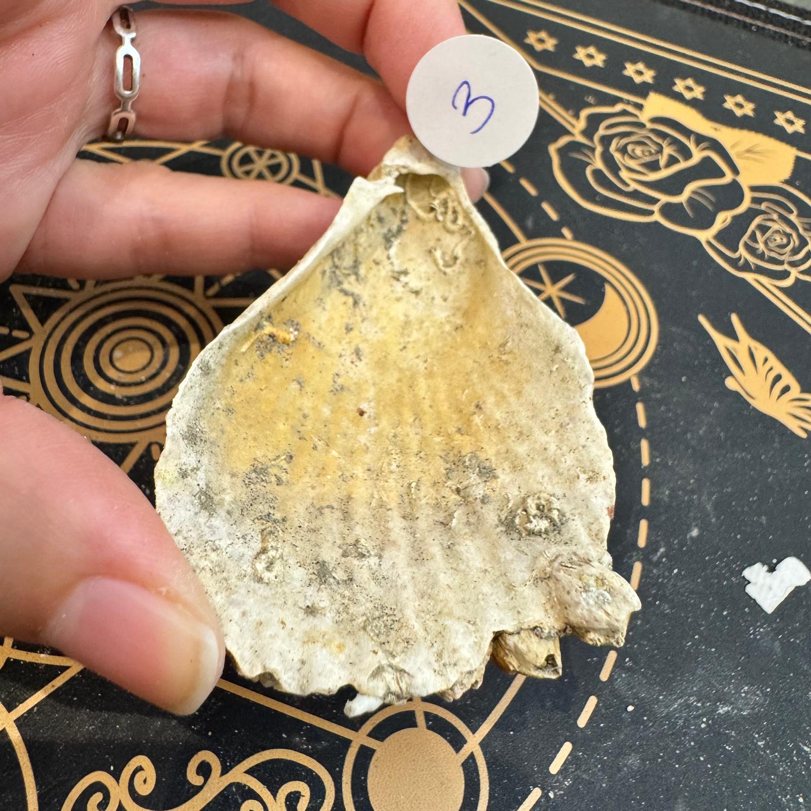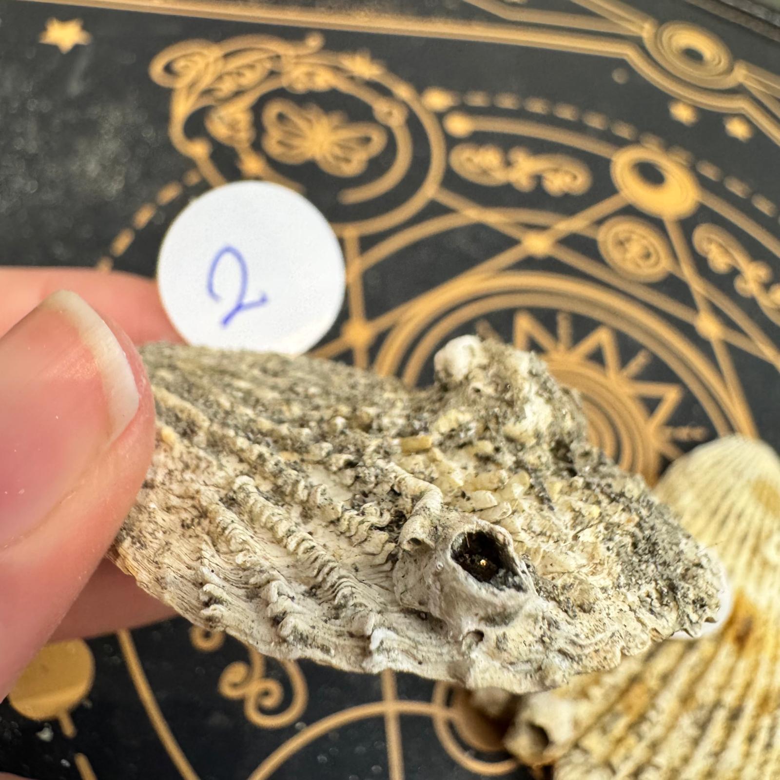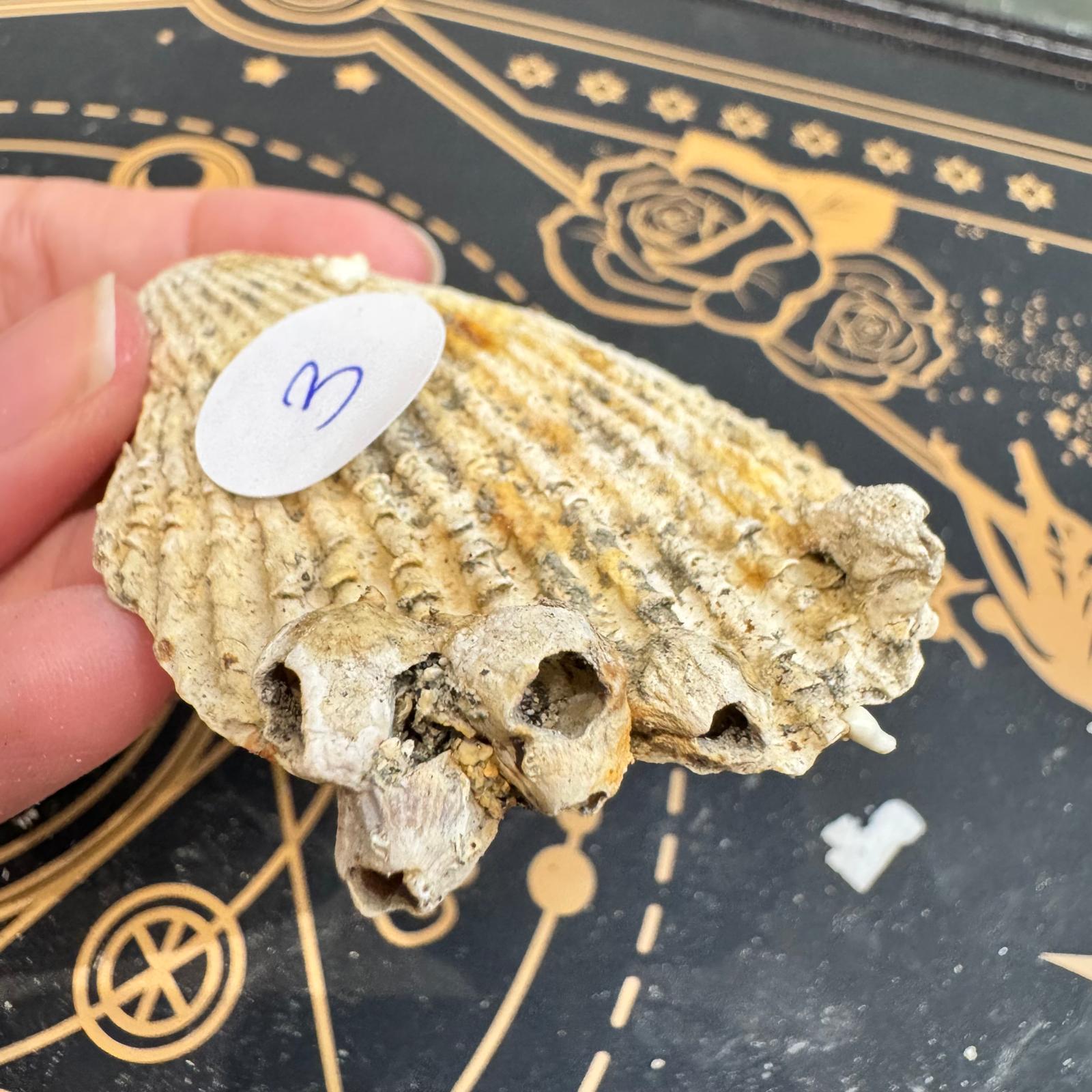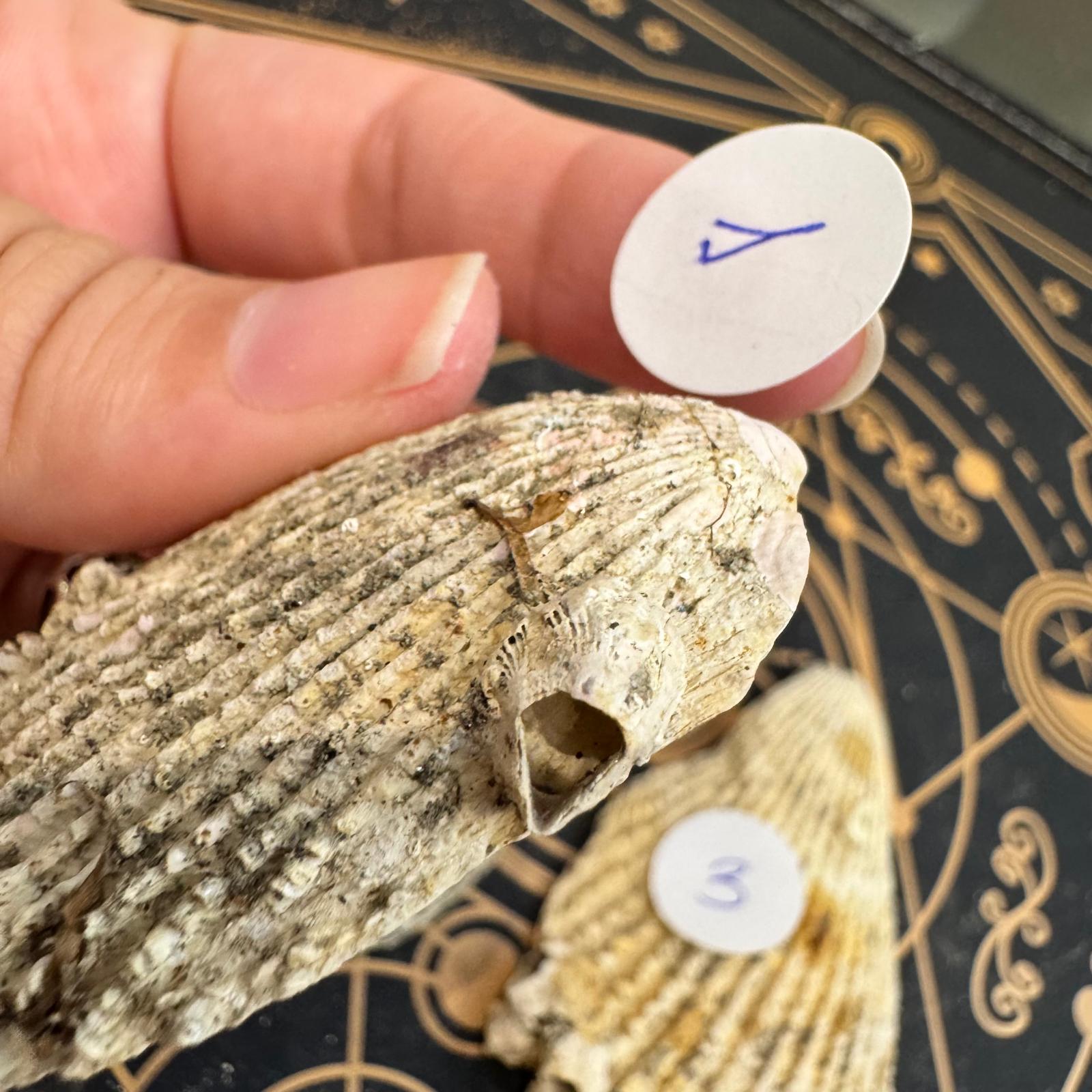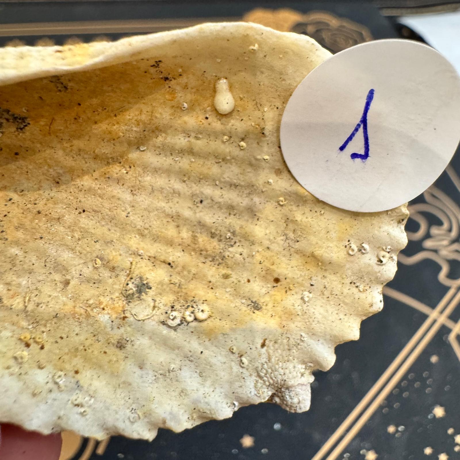 Estas piezas marinas son auténticos tesoros del océano: conchas naturales que conservan bellotas de mar (balanos) adheridas de forma orgánica durante años bajo el agua. Cada una es completamente única, mostrando las huellas del tiempo, la sal y la vida marina.