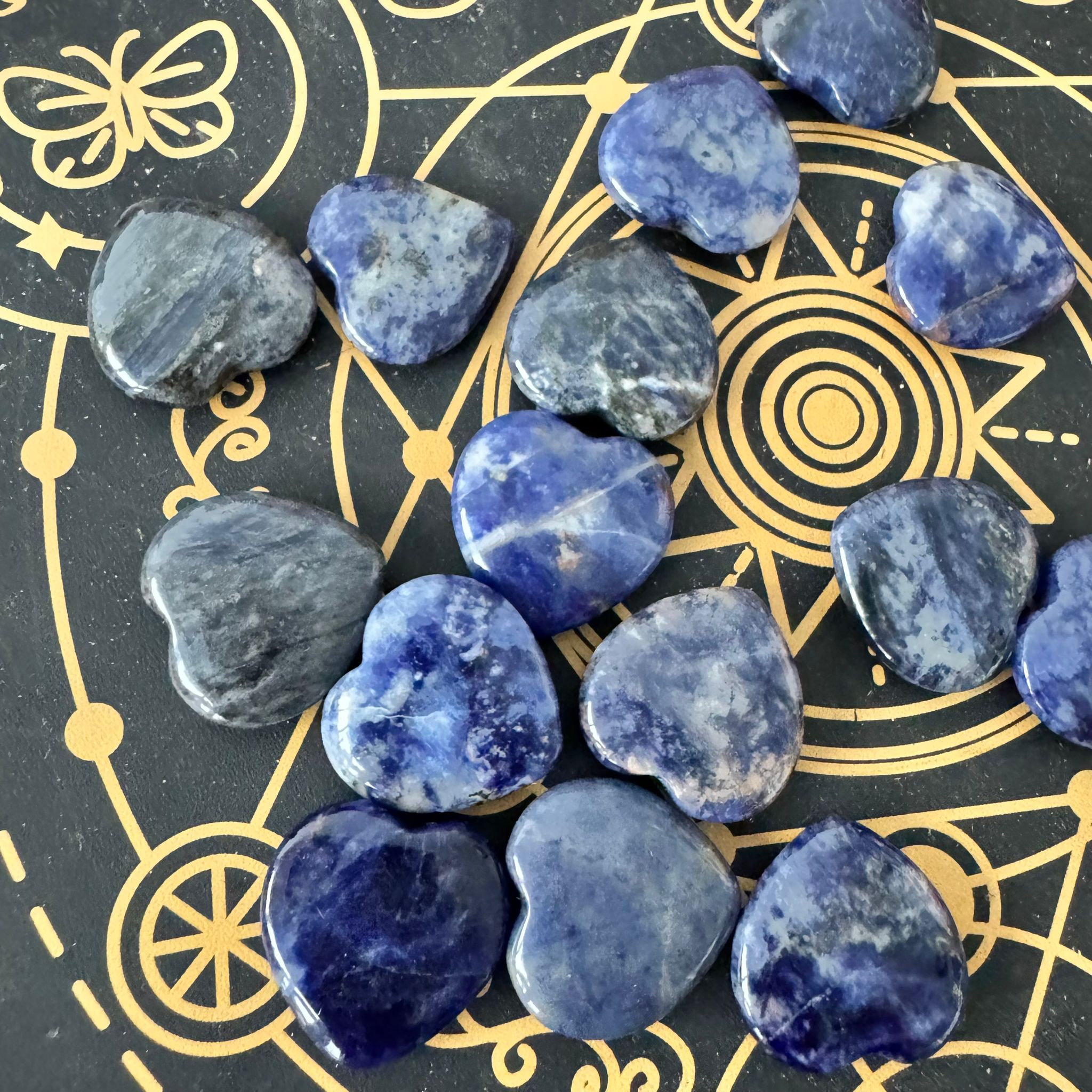 Este corazón tallado en sodalita natural combina dos energías muy potentes: la forma del corazón, que simboliza la armonía emocional y la apertura afectiva, y la vibración profunda de la sodalita, piedra de claridad mental, comunicación sincera y equilibrio entre pensamiento y emoción.