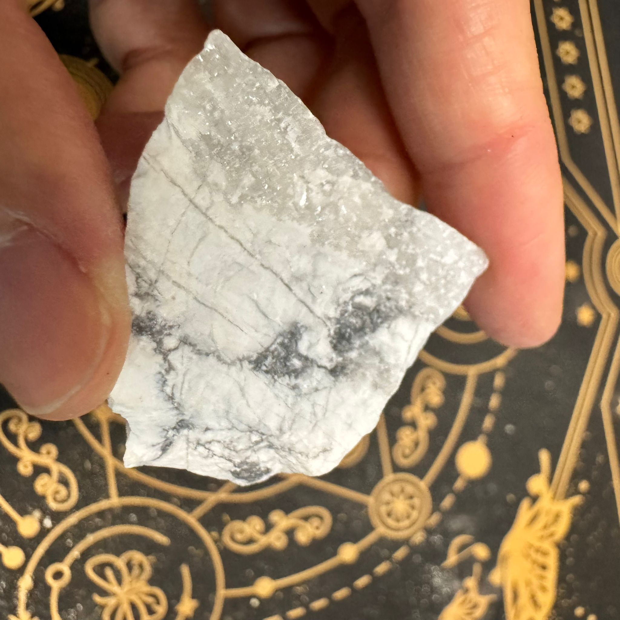 La magnesita es una piedra conocida por su energía suave y profundamente calmante. Su color blanco, a menudo con vetas grises o marrones, simboliza la pureza, la claridad y la tranquilidad.